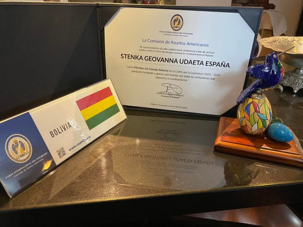 Stenka Geovanna Udaeta España es una destacada profesional del Derecho Notarial con 18 años de trayectoria. Actualmente, preside la Asociación Nacional de Notarios de Bolivia para la legislatura 2024-2027.
