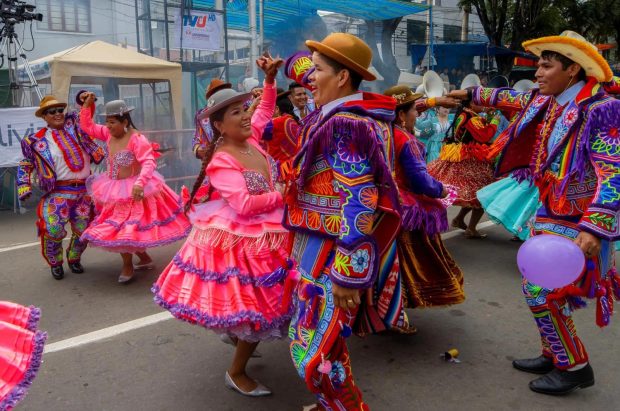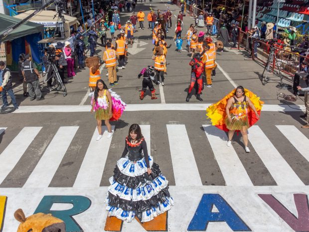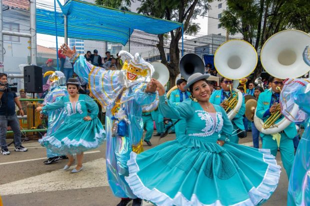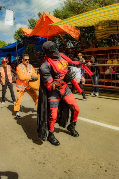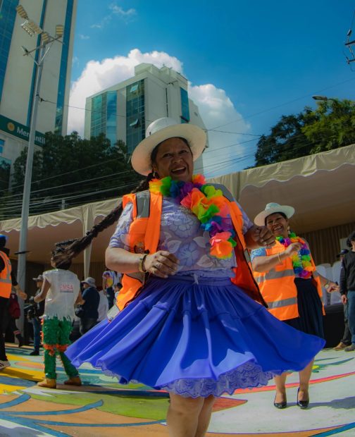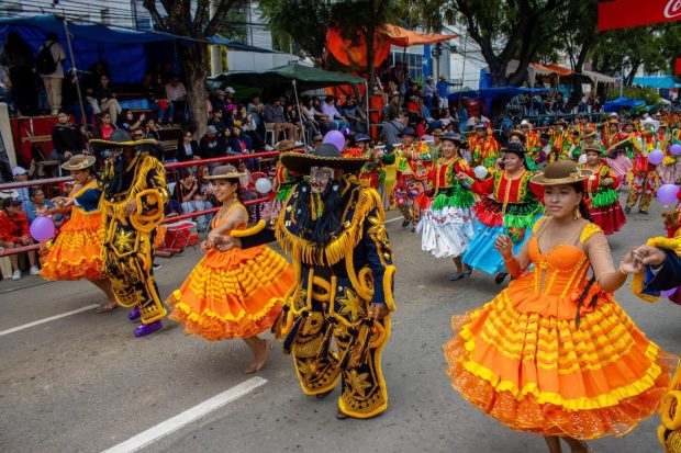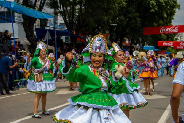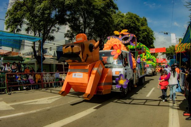 Uno de los momentos más aplaudidos fue la participación de expresiones culturales menos frecuentes en el evento, como los Chutas de La Paz y el Zapateo de Sucre, que captaron la atención del público y evidenciaron la diversidad de las tradiciones del país. Los carros alegóricos, elaborados con esmero, embellecieron el recorrido, mientras que agrupaciones folclóricas de distintos departamentos deslumbraron con trajes típicos y coreografías representativas de cada región.
