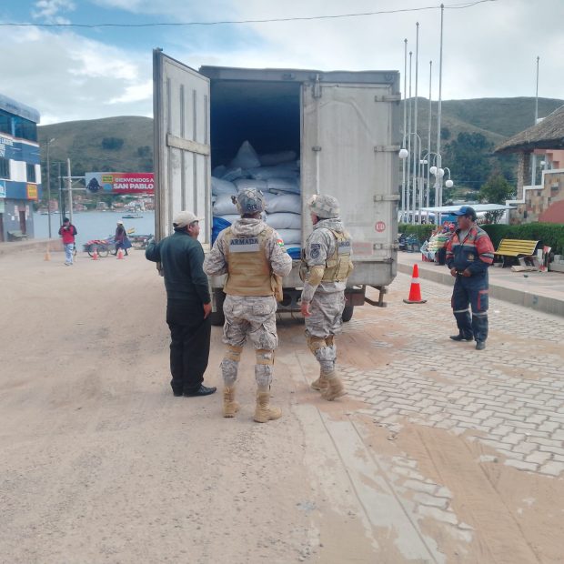 La Armada Boliviana decomisó 99 cabezas de ganado, 650 bolsas de yuca y varias garrafas de gas licuado que eran transportadas ilegalmente hacia Perú, como parte de un operativo realizado en el lago Titicaca y puntos estratégicos de control fronterizo.