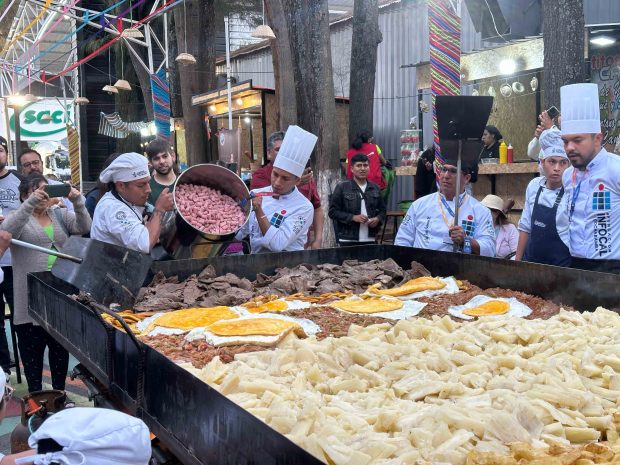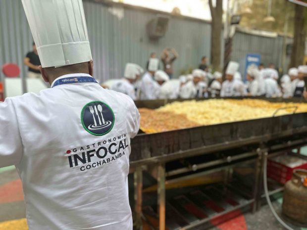 Un equipo de 50 chefs, docentes y estudiantes de la carrera de Gastronomía de Infocal preparó el plato en una plancha de 2 por 4 metros. Se utilizaron 100 kilos de carne, cuatro cargas de papa y yuca, y más de media tonelada de alimentos, ofreciendo una experiencia culinaria única a los visitantes.