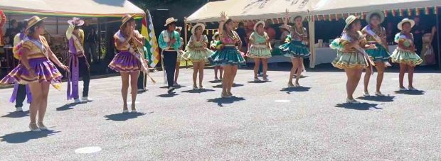 Varios negocios, presentaron quioscos con comida de la gastronomía y artesanías bolivianas, para el consumo de los presentes.