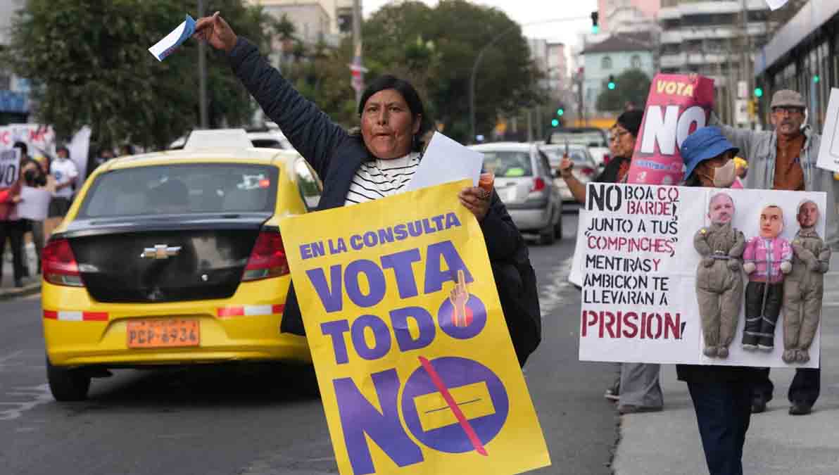 Entre los asistentes al cierre de campaña estuvieron dirigentes de la Confederación de Nacionalidades Indígenas del Ecuador (Conaie), la organización social más grande del país, así como representantes del Parlamento Intercultural de los Pueblos y del Frente Popular. Junto con Revolución Ciudadana, han sido las fuerzas más visibles en la oposición a la consulta, mientras que el partido oficialista ADN, liderado por Noboa, ha defendido el ‘Sí’.