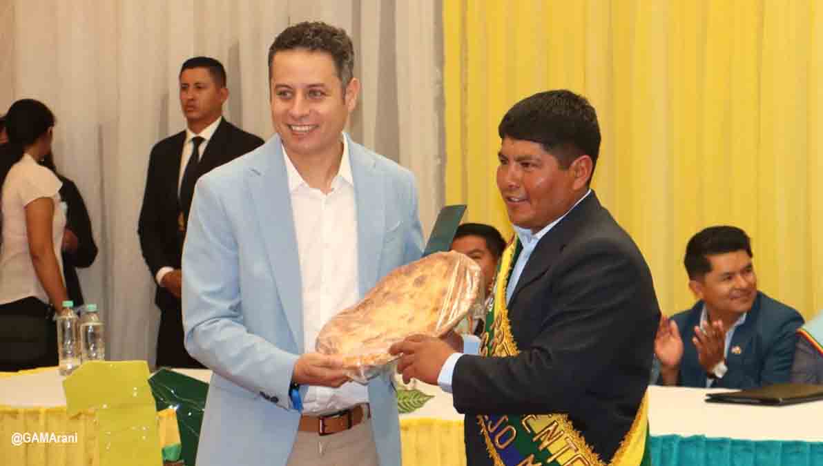 Edmand Lara retorna al país y asiste a sesión de honor en Arani